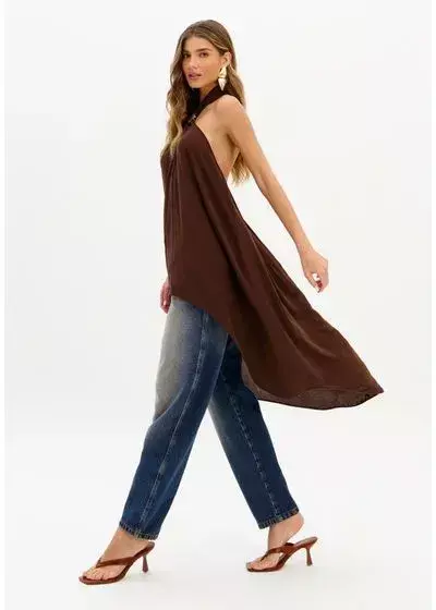 A Blusa frente única ampla alongada é a escolha perfeita para quem quer unir estilo e elegância. Com um caimento fluido, ela se destaca pelo comprimento alongado na parte traseira, trazendo um toque moderno e sofisticado. O detalhe em aviamento dourado no pescoço adiciona um charme irresistível, ideal para looks que vão do casual ao chic com facilidade. Aposte nessa peça para arrasar em qualquer ocasião!